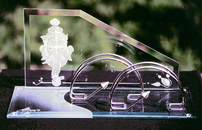 Since 1990 Jens Banerjee has visited colleagues and partners in India. Since then he has been there repeatedly to maintain a permanent exchange of expert knowledge and experience. For his customers in the hotel and catering industry as well as for customers who fancy the Asian philosophy the glass designer creates very individual highlights resembling the Asian interior.