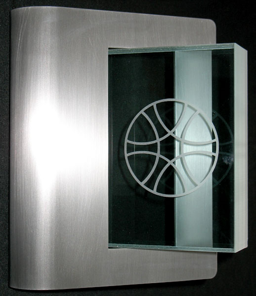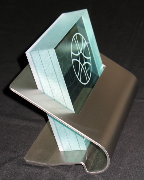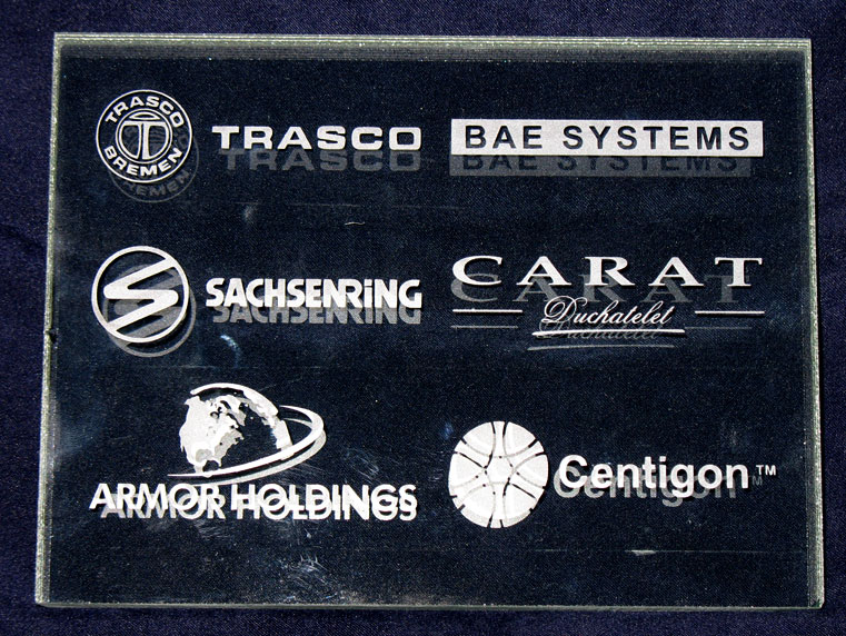 PR-motifs and company logos, usually only known as being made of adhesive foil, are sandblasted.