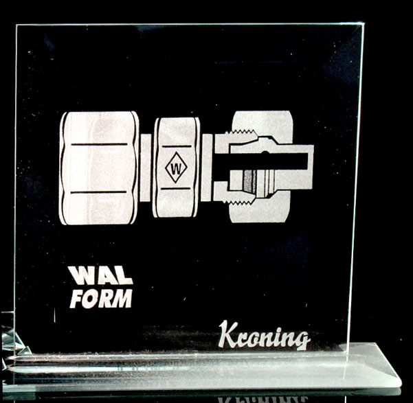 PR-motifs and company logos, usually only known as being made of adhesive foil, are sandblasted.